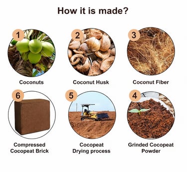 The cocopeat is dried to reduce moisture content. Proper drying helps improve shelf life, prevents mold, and ensures stable quality during storage and transport.