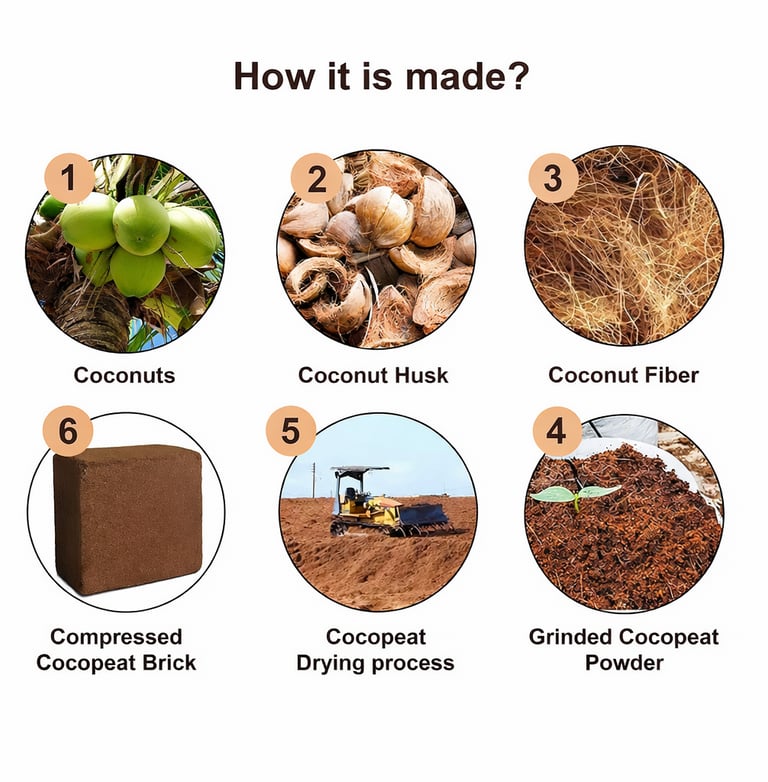 Coco peat is a natural growing medium made from the fibrous husk of coconuts. After coconuts are harvested for food and oil, the outer husk is processed, soaked, and finely ground to produce coco peat. It is commonly sourced from coconut-producing regions such as Southeast Asia, especially countries like Malaysia, Indonesia, and India. This material is clean, lightweight, and has excellent water retention, making it ideal for supporting healthy plant growth. Coco peat also improves soil structure, enhances aeration, and helps roots develop more effectively. It is widely used in agriculture, nurseries, hydroponics, and home gardening for seed starting, potting mixes, and soil conditioning. As a renewable and eco-friendly product, coco peat offers a reliable and sustainable solution for farmers and growers who want consistent crop performance with better moisture management.